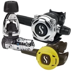 The first stages use the typical environmentally sealed balanced diaphragm design with a swivelling turret and fifth low pressure port on the end of the turret. The body is finished with a stylish satin chrome coating. Fins have been incorporated into the body design to help dissipate the cold generated by the first stage, helping to reduce the risk of ice formation and cold related freeflows.