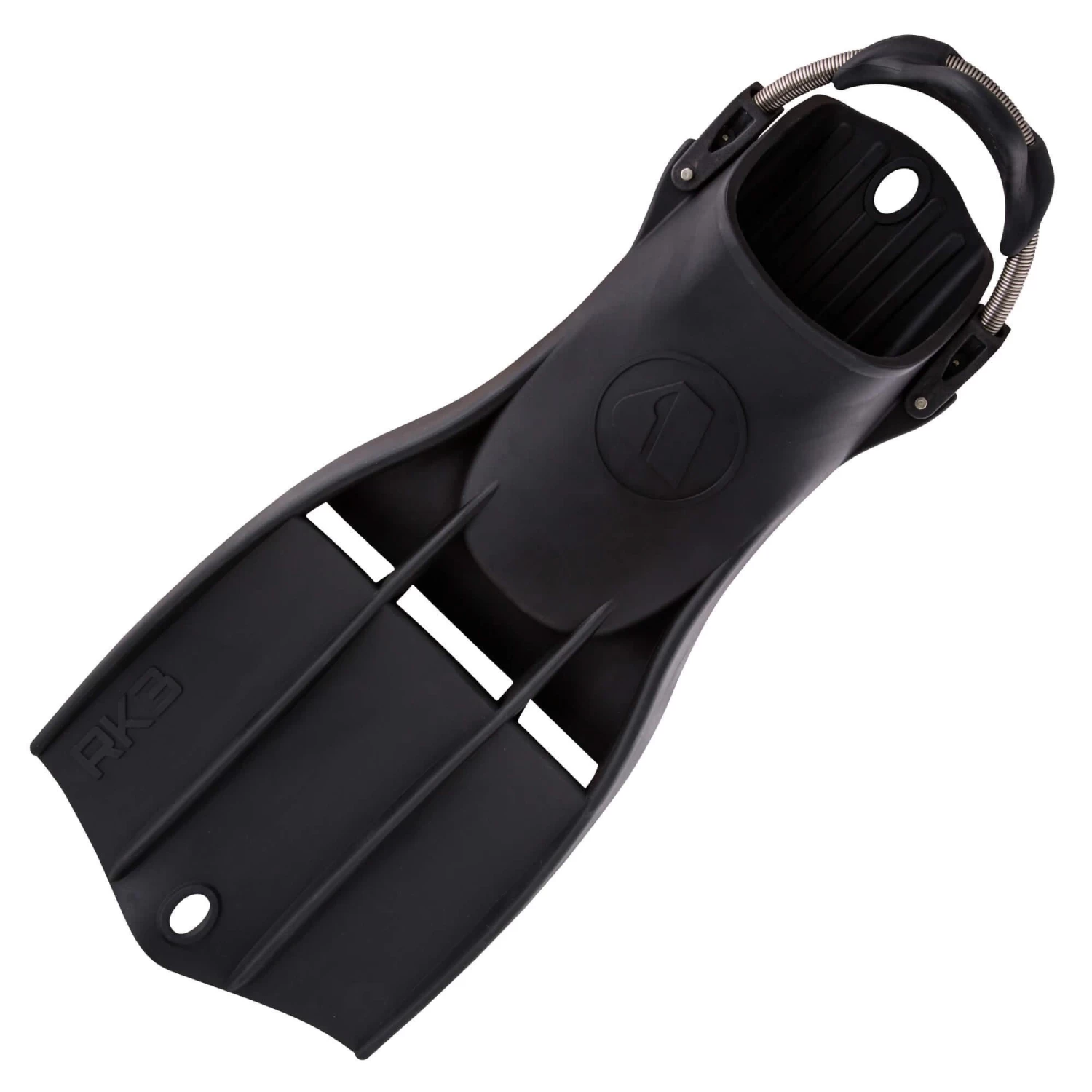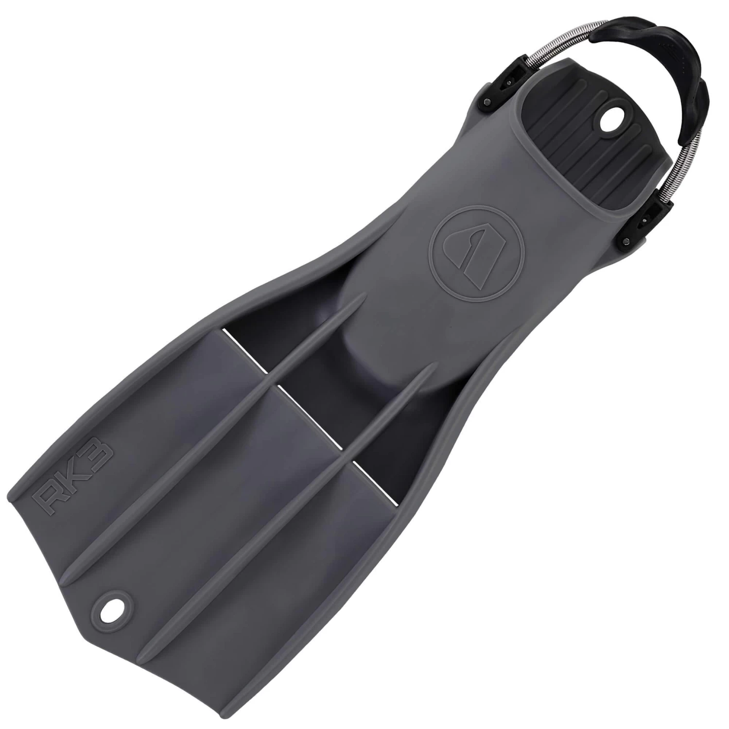 - Two large grommet holes designed to fit most karabiners for easy storage of the fins while accessing the dive site.