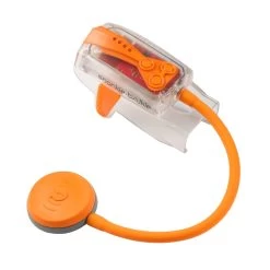 The unit consists of a movable speaker with a push to talk button connected to a transmitter/receiver that fits the snorkel’s top. The speaker can be placed over your left or right ear, depending on preference.