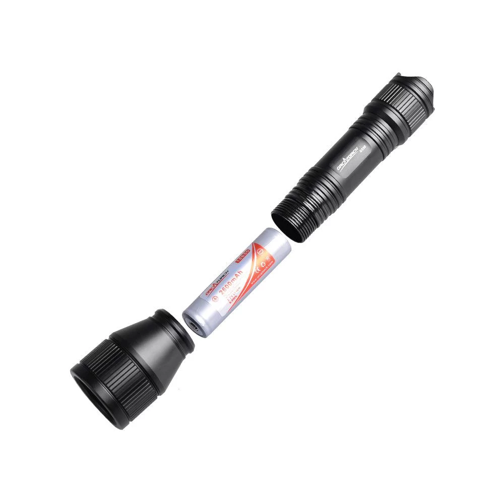 The OrcaTorch D550 is a waterproof and lightweight dive light, boasting a magnetic tail switch for easy use. With a CREE XM-L2(U4) LED, it delivers up to 1000 lumens of brightness and can run continuously for up to 5 hours and 45 minutes. Its compact design makes it ideal for underwater use.