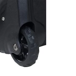 It is built with a blend of 500D nylon (85%) and polyester (15%) backed by a TPU coating to give it its waterproofing. Its has a reinforced base and saltwater-resistant wheels to help protect the bag while making easy work of transporting gear.