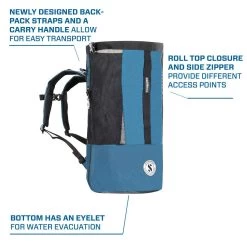The Scubapro Mesh 65 Dive Bag is perfect for your snorkelling, diving, and beach-day needs! Its lightweight yet sturdy cylindrical shape and combination of breathable mesh and denim blue colour fabric make it perfect for packing and unpacking with ease. The roll-top opening and side zipper give you two-way access, so you’ll never be left swimming in circles. Now, that’s what we call a splash!