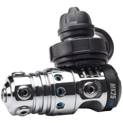 - Air-balanced flow-through piston in a chrome plated brass body provides constant and effortless airflow unaffected by depth, tank pressure, or breathing rate.