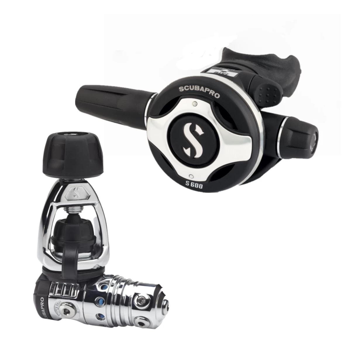 The S600 is a compact balanced second stage with a lightweight but strong fibreglass body that features diver adjustable inhalation control and venturi switch to fine-tuning during the dive. The S600 has a large purge button set in the centre of a stainless steel front cover, an orthodontic mouthpiece and compact exhaust cover.
