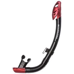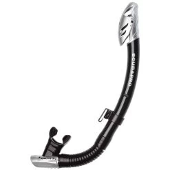 This innovative design features a regulator style mouthpiece and purge valve at the lowest point for easy clearing. The flexible, corrugated silicone tube keeps the mouthpiece aside when using a regulator.
