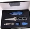The knife comes with a locking sheath and kit for BC/hose attachment.