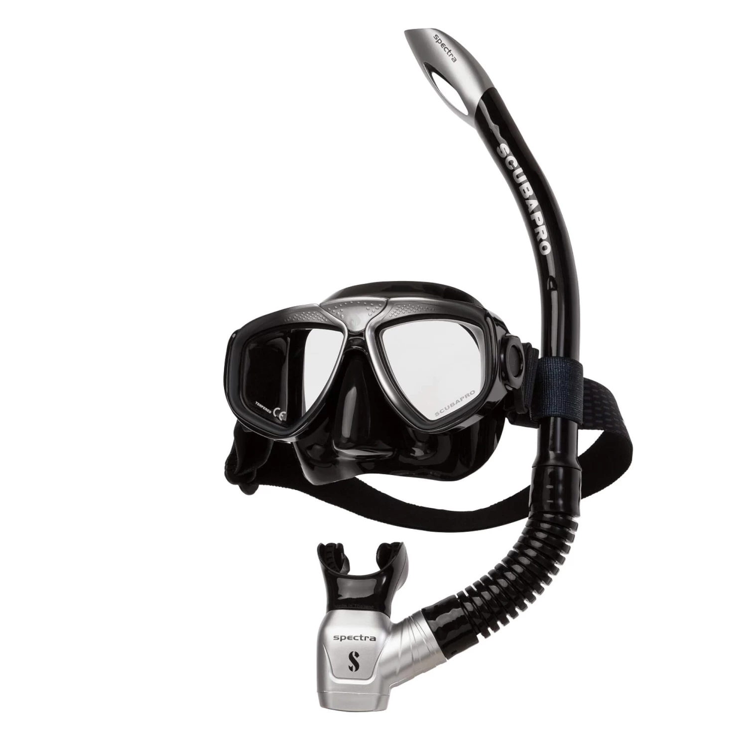 The Scubapro Zoom EVO Combo teams the low-volume dual-lens Zoom EVO mask with a Spectra snorkel. The Zoom EVO features a lens-change system that enables divers to switch optical lenses, without tools, in less than a minute. It offers a universal fit and comes with a Comfort Strap.