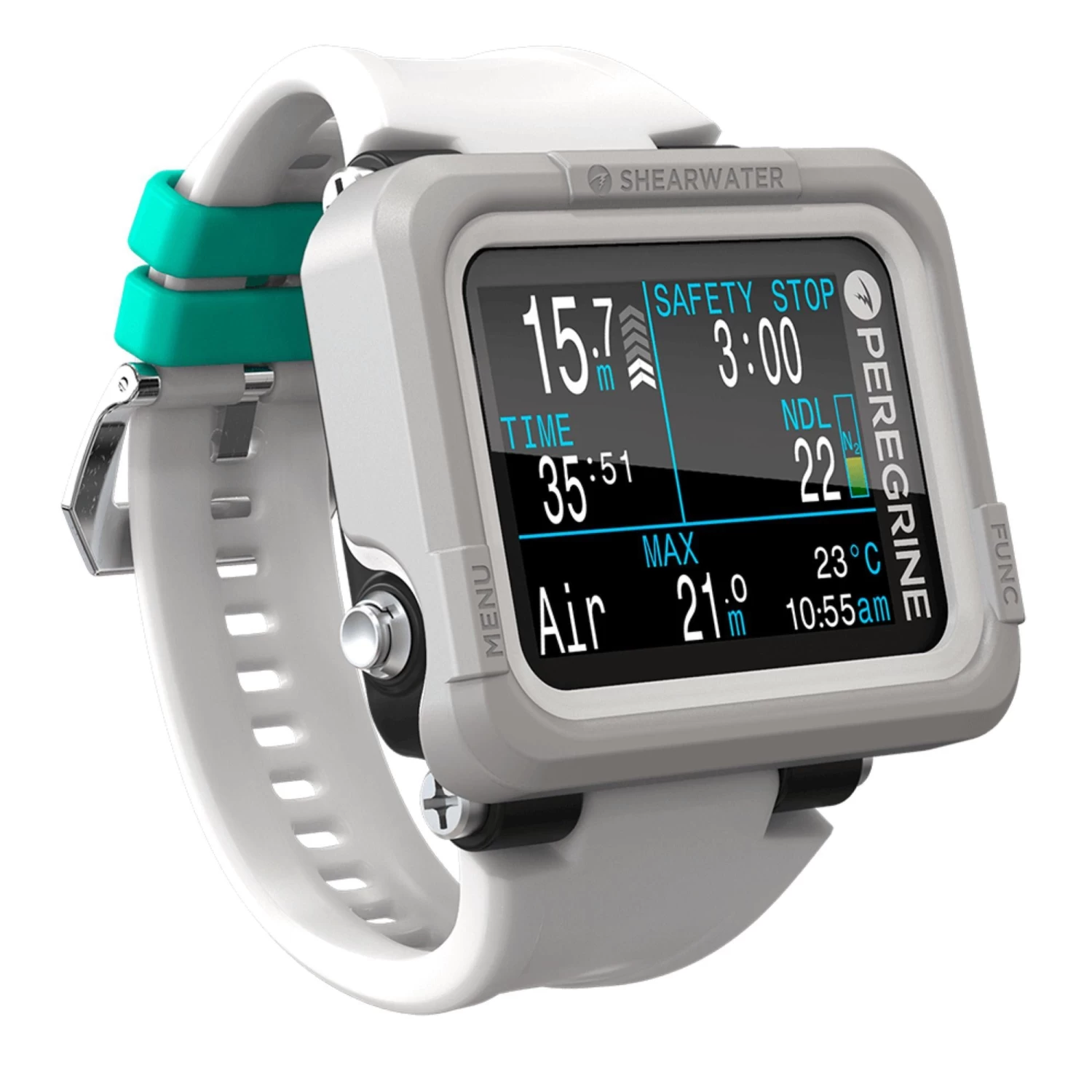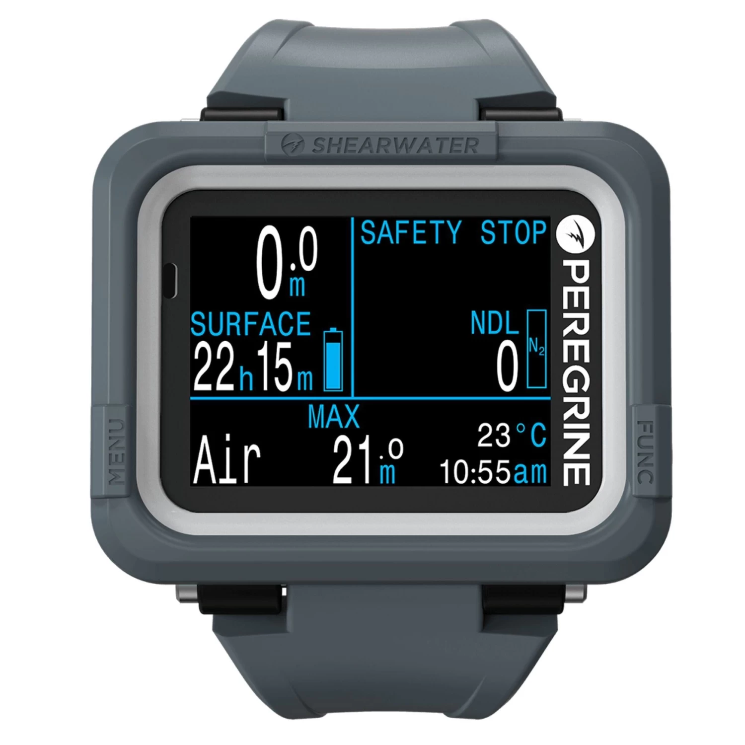 To top it off, the Peregrine logo flashes white which complements both the inner bezel and bright display that makes it easy to read. Get ready to go diving with Shearwater’s Peregrine Dive Computer!Â