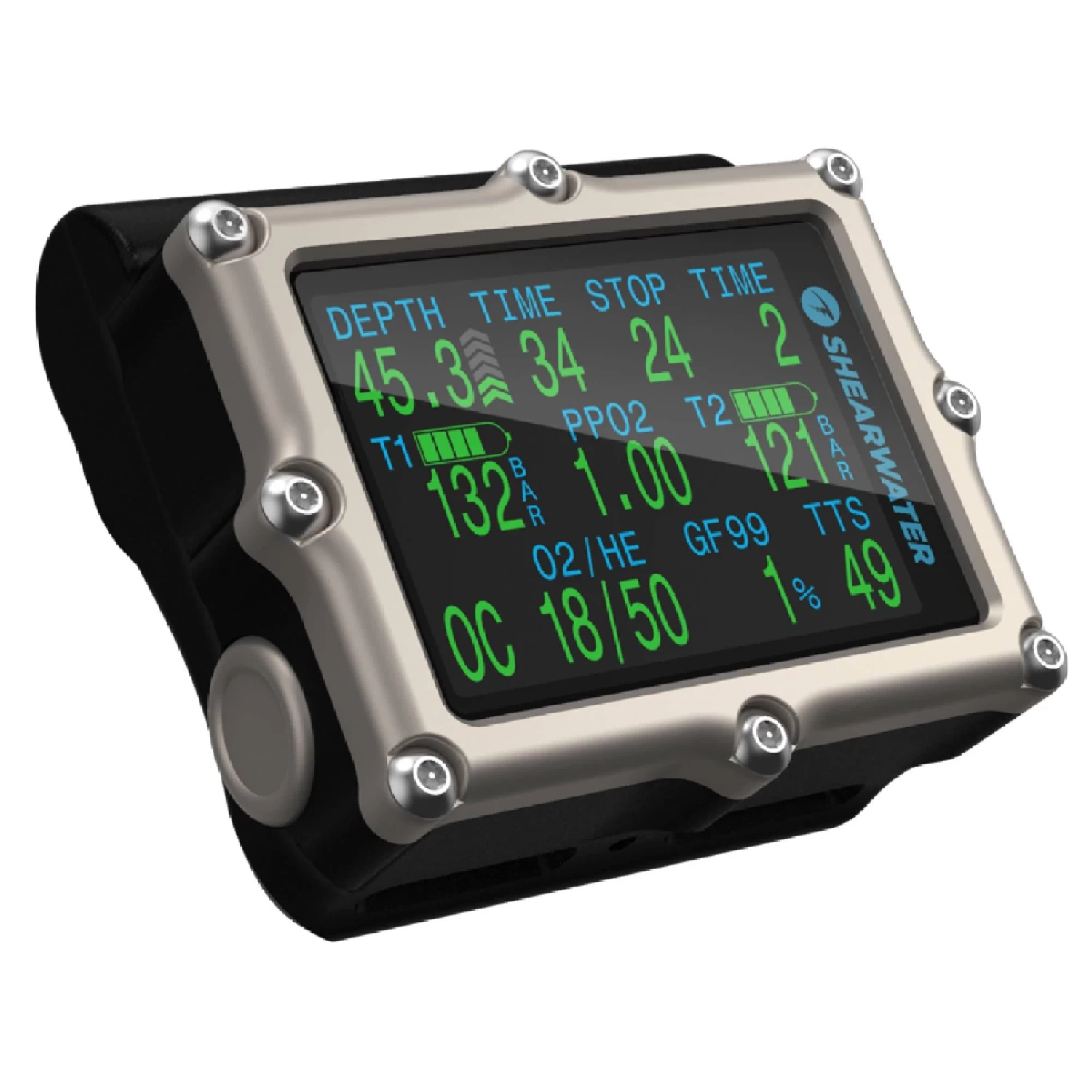 Shearwater Petrel 3 is available in standalone or rebreather monitoring models, including DiveCAN, 4-pin AK, and Fischer port connections.