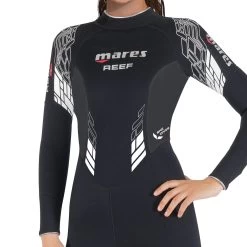 The whole suit contains 100% CR Neoprene which is soft and flexible, yet compression resistant. The knees and elbows are protected by very durable embossed Duratex flexible pads that prevent the neoprene from becoming snagged and worn through abrasion. Both the wrist and ankle seals are zippered and equipped with flow guards to help restrict cold water flow via the seals.