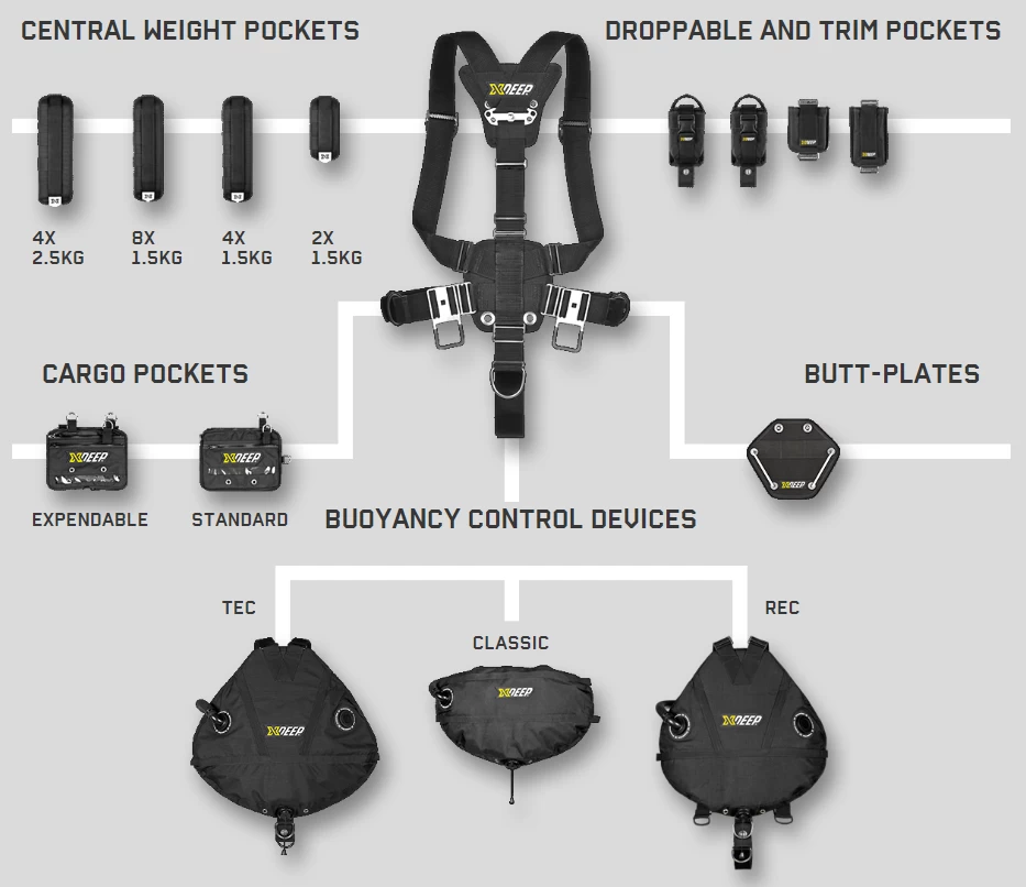 One of the key challenges for divers is dealing with unstable weights that can shift and cause discomfort during a scuba dive. However, the XDEEP weight pockets are designed to address this issue. These pockets are attached to the waist strap of the harness and securely fastened to the backplate, ensuring that they remain in place throughout the dive. This means that even when divers roll to the side or remain upside down, the weight will not move or cause any discomfort.front pocket of the weight system features a rigid strap with an always-open pocket. Although seemingly insignificant, this feature greatly facilitates the task of inserting weights, particularly during training dives or cold-water
