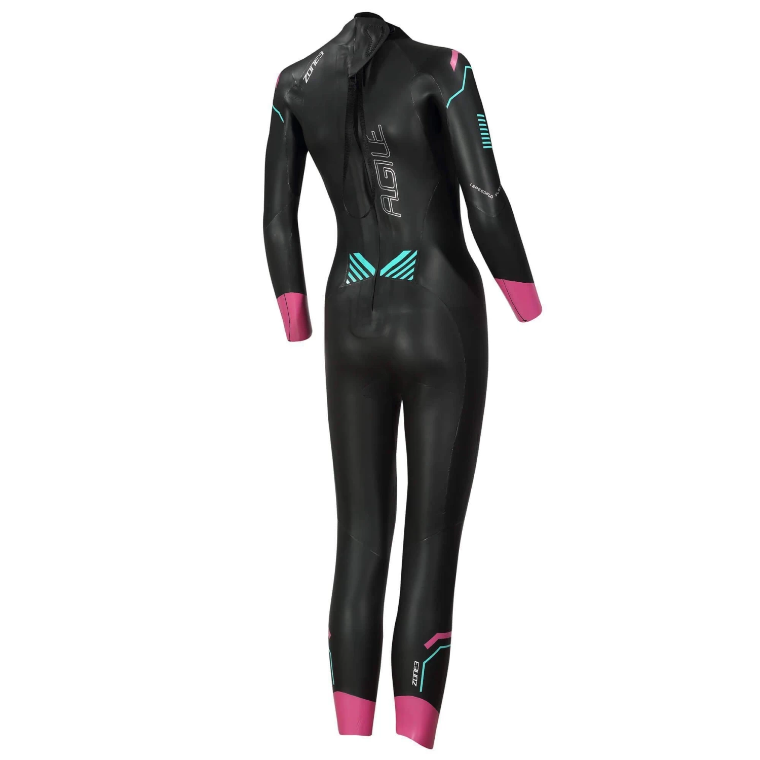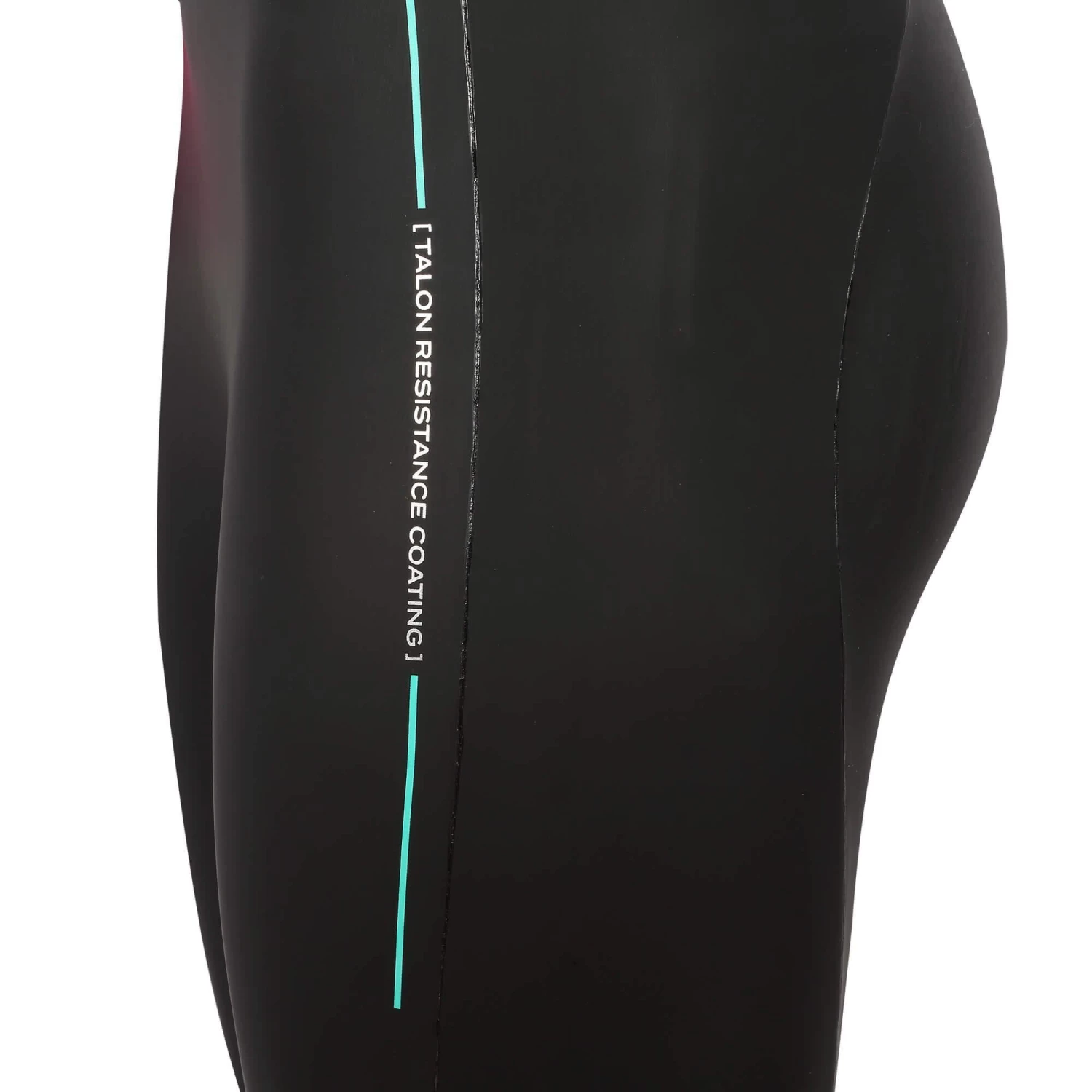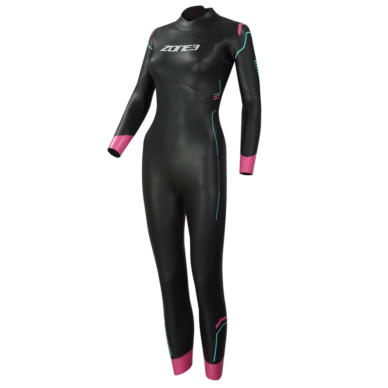The feature-rich Zone3 Agile Women’s Wetsuit is designed for speed and comfort. It keeps your body warm and supported for open water swimming or triathlon. This entry-level wetsuit has a combination of two, three and four millimetre buoyancy panels made from Speedflo and Smoothskin coatings. The high-stretch shoulder panel gives additional increased flexibility. This allows you to be streamlined and significantly reduces drag. The wetsuit is made from eco-friendly neoprene with a special coating to reduce tears from fingernails. The Agile Women’s Wetsuit also has an attractive pink trim at the wrists and ankles.